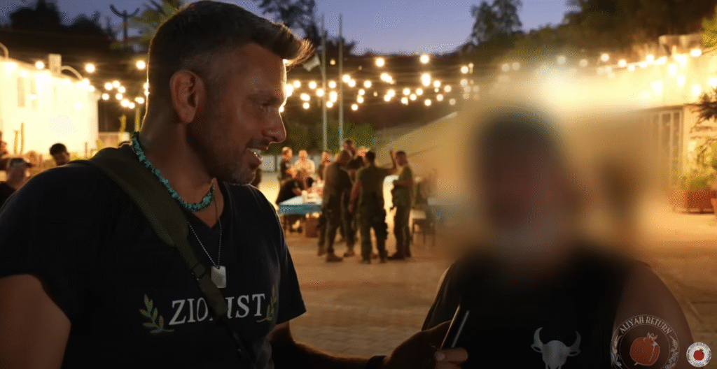 Chaim starts by saying that he’s standing outside in the cool of the night and he’s looking up at the sky and he doesn’t see any ballistic missiles being intercepted. He says it’s nice, and sometimes people who are going through a hard time just need something nice to help them get through it. That’s why the Aliyah Return Center is holding a barbecue for some IDF soldiers, who are battle-weary but not defeated. Chaim quickly interviews an ARC volunteer from the US State of Florida who is helping with the barbecue.