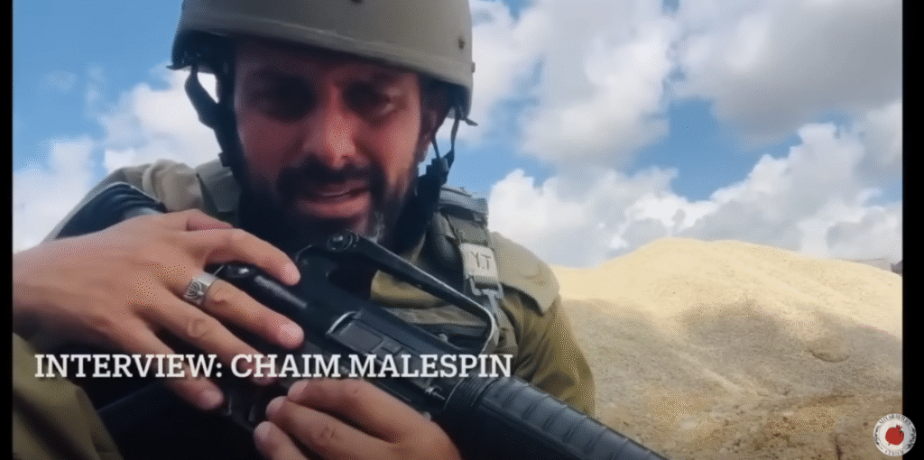 Chaim starts by talking about Asaf Cafri, a soldier in a unit that served alongside the Ya’alom Combat Engineering unit that he is part of who was killed in action over the weekend. Chaim says a Hamas sniper got him as he was standing in the turret of his tank. Three other crew members of that same tank were also wounded in the incident, which occurred in a buffer zone that’s been set up by the IDF inside Gaza to keep Hamas away from the border with Israel.