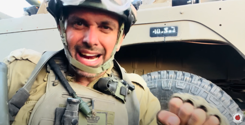 Chaim starts out the video by saying that any time the IDF is rolling by, Israeli civilians see them and give them nice things to eat and other treats. He says this is a sign of unity that is badly needed at this time, as the war is far from over and there’s a lot going on.
