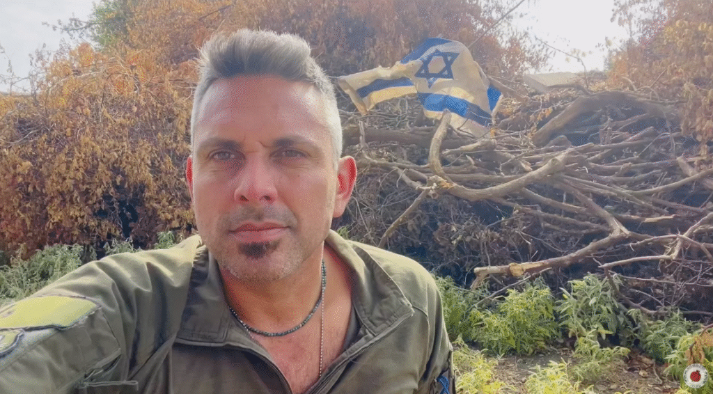Chaim starts out by saying he’s out of uniform today. It is Simchat Torah, the day that Jewish people come to the end of the yearlong cycle of Torah reading and roll it back to the beginning. It’s also the day two years ago when Hamas launched its massacre of Israelis and also took 251 Israelis captive back into Gaza.